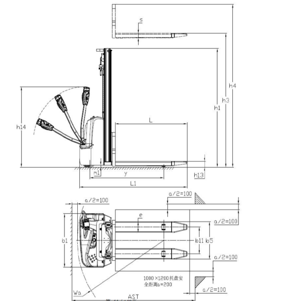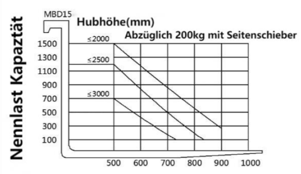 Der Elektro-Hubwagen der MBD1225 ist für Lasten bis 1200 kg geeignet und kann Paletten bis zu einer Höhe von 2500mm heben und einlagern. Dank seiner innovativer Technik ist dieser Elektro-Hochhubwagen optimal geeignet, um einen schnellen und effizienten Warenumschlag zu erreichen. Abgesenkt beträgt die minimale Höhe des Hochhubwagens 2030 mm (eine Zimmertür ist knapp 2m hoch).