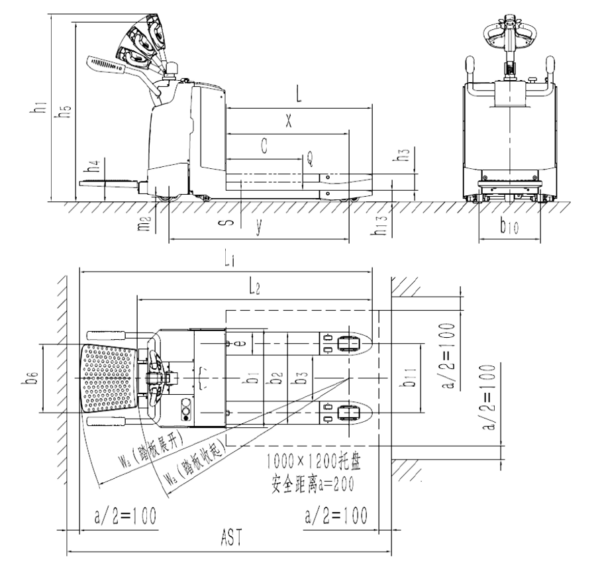 - Das Fahrzeug bietet die Möglichkeit der Anpassung an individuelle Anforderungen, wie z.B. die Wahl zwischen einer Side-Pull-Batterie oder einer Batterie mit großer Kapazität, sowie die Möglichkeit von Nicht-Standard-Anpassungen, wie z.B. Gabellänge oder -breite.